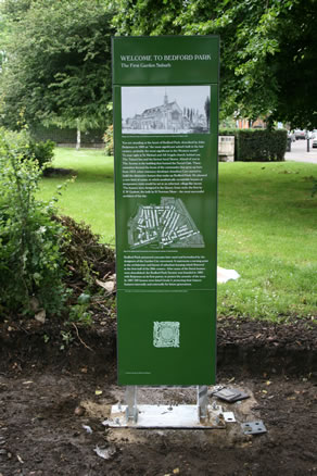 A new sign which gives detailed information about Bedford Park, the first 'garden suburb', has been erected for the benefit of both local people and visitors to Chiswick. The information sign, which has been organised by the Bedford Park Society, is located by St Michael and All Angel's Church and a formal ' handover' will take place later this month. The sign has been customised in Bedford Park green, with a map of the conservation area , plus notes on the architecture and history and how the Bedford Park Society continues to protect the neighbourhood.