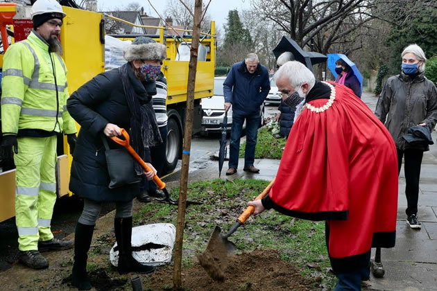 Mayor of Hounslow Tony Louki plants tree on Staveley Road
