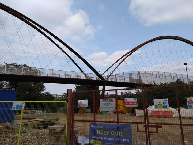The latest pictures taken of the 135m footbridge which will link Chiswick Business Park with Chiswick Park tube station show that work is proceeding apace, and the bridge is expected to open to the public in December 2018. Work to lift the two spans into position went ahead in June - the two connecting spans of bridge, weighing approximately 140 tons each, were lifted into place over the railway by a 1,500 ton crawler crane, positioned onto the four giant 8 ton V-shaped steel legs. The building of the third span took place in July and is expected to be installed in October. The installation will be finished with electricity, lights, landscaping and completion of the bridge entrances between October and December this year. The bridge will provide direct access to the northern end of the Estate, between Buildings 7 and 8, from Chiswick Park Underground Station and improve the Estate’s connectivity with the restaurants and bars of Chiswick High Road. Once opened, it is hoped the footbridge will also ease congestion at Gunnersbury tube station and make the daily commute of over 9,000 workers on the park easier. Construction work began last year after an agreement was signed between Chiswick Park, the London Borough of Hounslow, the London Borough of Ealing, Network Rail and Transport for London.