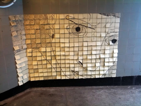 When we saw what @elisabethhoff had Tweeted, we thought it far too good not to share with the non Twitterers of W4. @elisabethhoff: Ran into this post-it artwork on the Chiswick A4 underpass on my morning run.