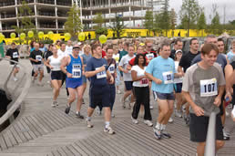 Over 1,500 people turned up at Chiswick Park on Sunday 18th September to support the third annual Yellow Umbrella Day. Around 400 people participated in two sponsored walks, the 5km ‘mini-umbrella’ and the 10km ‘grand-umbrella’ and the 10km run or ‘runbrella’ that started from Chiswick Park and followed routes along the river Thames. First place in the men’s 10km run went to Scott Mitchell, with Jamal Mohamad second and Ashraf Khan third. The women’s event was won by Suzanne Hilton, second place went to Fiona Hopwood and third to Angela Austin. The winners were all either locals, from companies located on the park, or from Runners World. The number of people taking part in the events has more than doubled since last year. The team are hopeful they will improve on last years fundraising efforts with all the money raised going to children’s charities; The Shooting Star Children’s Hospice, Whiz-Kidz and Mukti, making a real difference to children locally, nationally and internationally. The event was open to all and was designed to be inclusive for the whole community with course options to suit a wide range of ages and abilities. Fundraisers and guests were welcomed back to Chiswick Park after the sporting events, to enjoy a huge party which was free to all. The entertainment throughout the afternoon included a live performance from ABBA tribute band, Bjorn Again, a beat the goalie competition, gladiator jousting, a treasure hunt and a BBQ.