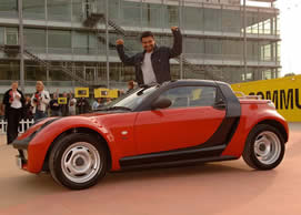Biju Mohan, a Software Developer for Teletext arrived at work as usual at 9am and by the time he left at 5pm he was the proud owner of a brand new Smart Roadster worth over £12,000. Members of staff from all the companies within Chiswick Business Park competed throughout the afternoon in four gruelling heats. The competition, run by the Enjoy-work team, consisted of a glitzy game show host who called safe combinations while hundreds of park employees waited below, with baited breath. If the combination opened the safe they had chosen, they could proceed to the next round. By 4pm only three contestants remained in the competition. The game show host called for silence to the crowds who had gathered to cheer their colleagues on. The first to enter the correct code into the safe won the car. Biju Mohan entered the correct code and won the day, and the Smart Roadster. The two runners up were Robyn Ferrar of Onetel and Sharon Chessmore of Vue Cinemas. They accepted their mini, remote control Roadsters with gratitude but also the knowledge that they came so close to what might have been. Sarah