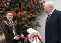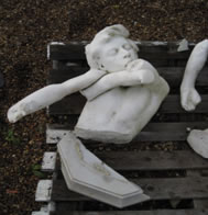 While visiting the Chiswick House Camellia Festival Mayor of Hounslow Cllr Colin Ellar snipped a ribbon to celebrate the restoration and return of an intriguing 19th Century statue of ‘Ishmael in the Wilderness’ to the Conservatory. Accompanying him was George Nissen (photo right), Chairman of the Friends of Chiswick House, which have generously funded the repair of the marble statue. The statue was given to the Borough of Brentford and Chiswick in the 1950’s by Dr Morgan-Evans a local GP who practised in Chiswick for many years and the council chose to place it in Chiswick’s historic Conservatory. Sadly, probably during the time when the Conservatory fell into decay, the statue was badly broken and ended up in pieces and overlooked in an obscure part of the gardens. ‘Little was known of its provenance’, says Chiswick House and Gardens Trust Director Sarah Finch-Crisp, ‘until a conversation with the ladies of the Chiswick Women’s Institute in 2010 who were a mine of information and able to throw some light on its history. Chiswick House and Gardens Trust are immensely grateful to the Friends of Chiswick House for enabling the statue to be expertly repaired and returned to the restored Conservatory in time for our first Camellia Festival’. Ishmael in the Wilderness Statues (Left to Right) The 19th C marble statue of ‘Ishmael in the Wilderness’ was given to the Borough of Brentford and Chiswick in the 1950’s by Dr Morgan-Evans who practised in Chiswick for many years. The doctor had been given the sculpture by a patient. In 1954 the borough’s Open Spaces Committee considered placing the sculpture in the gardens as part of their planned improvements to the Grand Allee and Patte d’oie but on investigating its durability decided it should be placed indoors. It is likely that the statue was located in the Conservatory at that time. The photograph above shows the statue in the Conservatory rotunda flanked by a statue of the ‘Skipping Girl’ which was stolen in 1969 and the ‘Nymph Preparing for her Bath’ which was taken into the house for safekeeping sometime prior to 1994 and where it can still be seen today. The statue of ‘Ishmael in the Wilderness’ was severely damaged, possibly during the late 20th Century when the Conservatory was falling into disrepair and suffering repeated vandalism.