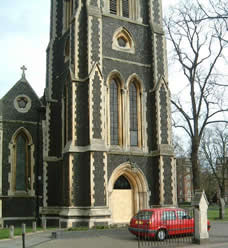 The glass doors of Christ Church on Turnham Green were smashed with a shopping trolley on Tuesday 18th April 2006 sometime between 18.00 and 07.15 the following morning. The incident was the fourth attack the church has suffered in the past three weeks which began with two concrete blocks being used to smash two large windows. These windows have since been repaired. Reverend Jim Dainty of Christ Church told Chiswickw4.com "We have had our front entrance doors attacked with a small piece of what looked like granite which left chip marks on the engraved doors. Then last week we had an attempt to open the doors with some implement which removed a slither of glass from one of the doors and then last night (18th April) we had a Sainsburys trolley smashed through the door and it has totally destroyed the entrance door to the Church."