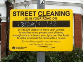 Residents in the Sharon Road area of Chiswick were issued with what they described as “absurd” parking tickets when they obeyed Hounslow Council signs about parking in their area. Signs had been posted along the road asking residents to deliberately park their cars away from the kerb so that the gutters could be cleared of leaves on Monday (January 23rd). However, a council parking warden then ticketed them for parking away from the kerb! Two residents challenged the notice, and said the steet cleaners were actually in the road at the time the parking notice was issued. One described the issuing of parking tickets as an example of “incompetence”. After issuing the tickets, when the warden was challenged, he took a number of photographs of the sign before leaving.