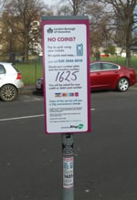 The meters do not accept coins, they can only be used by those who sign up to Ringo - a method of paying for parking using a mobile phone. ChiswickW4.com queried the new meters with the parking department of Hounslow Council who explained, "The meters in that area were old-style meters, and often broke. "When they show the Out Of Service message, it's actually illegal to park there. In order to allow the bays to be used, we put the Ringo information across them - previously the meters took both coins and used the cashless parking facility - so that the bays could be reinstated." "This is a temporary measure as we're in the process of replacing the old-style meters with a new pay and display machines instead. That should be in the next few weeks." A spokesperson for Hounslow Council added that they were not aware of any plans to withdraw coin-operated machines. Further information on cashless parking can be found here.