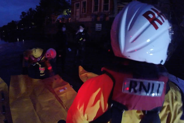 The Chiswick RNLI Lifeboat crew have been called out to assist in the ultimately unsuccessful rescue of a whale in distress on the River Thames. It is fifteen years since they have had an incident of this nature. The baby Minke whale was spotted by Barnes Railway Bridge on Sunday morning (9 May) at around 11am and had to be helped out of shallow water under the bridge. Later that day the Chiswick night shift crew received the call at 8.15pm about the whale in distress at Richmond Lock. The whale was beached on the boat rollers at Richmond half tide lock. Two hours either side of high tide boats can pass through without using the lock but small, unpowered craft can use the boat rollers. The lock keeper was already there hosing down the whale. The lifeboat crew were soon joined by specialists from the British Divers Marine Life Rescue (BDMLR) and a little later by the London Fire Brigade fireboat. BDMLR confirmed it was a young Minke whale and assessed its condition. Watched by a large crowd of onlookers, crew from the three agencies worked together to manoeuvre the creature onto BDMLR’s inflatable cradle. The lifeboat towed the cradle half a mile downstream as far as Isleworth where the whale freed itself. The exhausted crew returned to station in the early hours of Monday. That afternoon the whale had made its way back up river to Teddington Lock. Unfortunately, it died later that day." Chiswick RNLI Commander Andy Mayo said, ‘We have many calls for assistance for pets and their owners in the water and occasionally swans but this was a different order of problem. The BDMLR team supervised the difficult rescue with the assistance of three RNLI crew and many firefighters. Although it was left swimming freely, we understand there is still concern about the young whale so far from its natural habitat’.