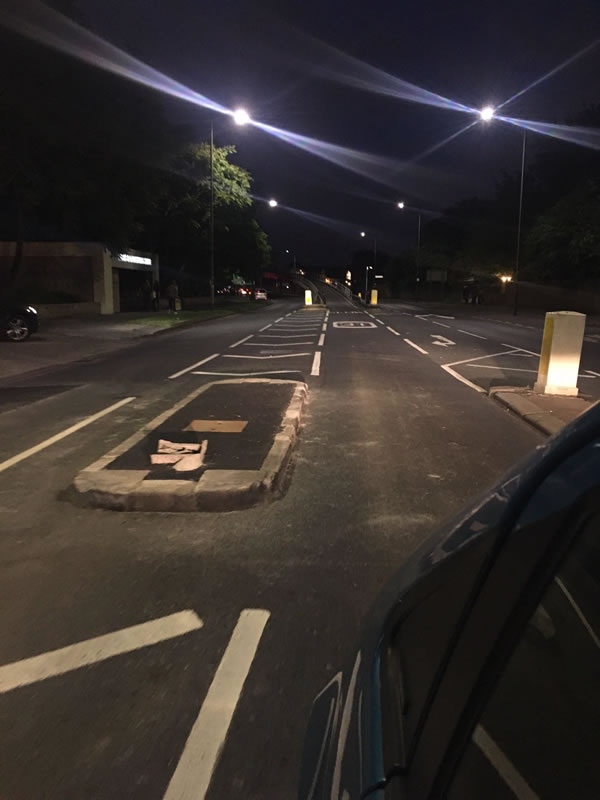 A local resident has described seeing at least eight cars receiving punctures after hitting the entrance to the ramp at the Hogarth flyover one evening last week. She told Chiswickw4.com that it appeared that a bollard had been taken away which normally serves as a warning that the road is approaching the ramp. Motorists can then decide whether to proceed over the flyover, or veer left to the roundabout. Tyres are apparently being damaged by hitting the concrete island, which can be seen in the above photograph. "On Wednesday night (June 15th) my daughter got a puncture as she drove through the first road narrowing concrete islands on the approach to the flyover. "Normally there are 2 white bollards indicating the islands but last night the left one was missing. Also the shape of the concrete island appears to have changed and angled to cause maximum damage when clipped at slow speed. "Whilst waiting for our pick up truck we saw several motorists (within 2 hours) with near side front tyre punctures after doing the same thing " She said that her twenty-one year old daughter travels that road frequently on her way to work. "We pulled into Cornwall Grove while waiting for a truck to pick up the car and saw four other cars pulled in, who had all been caught at the flyover. One had two flat tyres. There was a Japanese family in a hired car who hadn't a clue what to do or where they were. All had their front near side tyres punctured." Later when she went back to take photographs, there were three cars with their hazard lights pulled over at the side of the road. She also observed a woman driving a car with a puncture along Chiswick Lane, who then pulled in close to the Goldhawk Road, possibly also having come over the flyover. "It cost us over £200 at the garage and the car had to be rebalanced. I don't know what went wrong but perhaps they have reshaped the island and it doesn't give as accurate a warning." Another Chiswick local wrote on our forum that there was chaos when a car was immobilised at the entrance to the flyover. The entrance is just opposite the former Hogarth Business Park where Berkeley Homes is currently building a residential development. We told Transport for London ( TfL) about the reports but have yet to receive a reply. A spokesperson said they would investigate. The flyover had a major maintenance work in 2014 to strengthen its structure. Any problem with the flyover contributes to traffic chaos in Chiswick as more traffic is then directed towards the Hogarth roundabout and long queues develop. It is the second time in two weeks that local people have complained about this stretch of road. Drainage work taking place on the road just opposite the ramp entrance mean that the 190 bus stop had been out of operation for two weeks and commuters had to walk a considerable distance to the next stop on Chiswick Lane. June 18, 2016