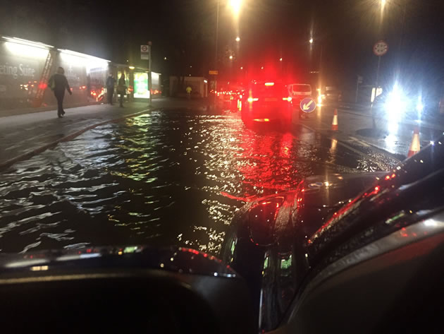 There were substantial traffic delays around Hogarth Roundabout after a burst water main led to flooding on the carriageway. The Hogarth Flyover was closed as a precaution. Flooding appears to have originated on Burlington Lane (A316) just south of the Hogarth Roundabout. The water was reportedly at a depth of 30cm at some points and although the A4 at Hogarth Roundabout remained passable traffic flow was restricted leading to tailbacks of over a mile. Residents in the area have also reported a cessation of water supplies as a result of the burst main.