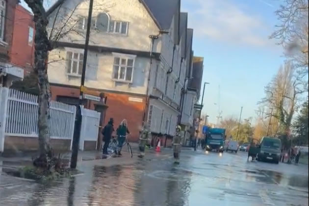 A 30 inch pipe has ruptured and Thames Water engineers are on the scene. A specialist vehicle to suction up the excess water has been deployed.