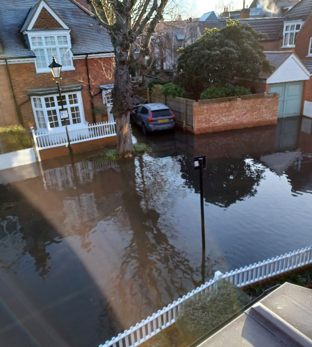 Water started flooding onto the road on Thursday morning (19 January) near the Tabard pub reaching as far as Rupert Road. At its height, the flooding was ankle deep on parts of Bath Road and Roman Road.