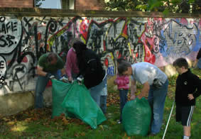 Strand on the Green Recreation Ground in Thames Road, is looking much smarter after a big clean up by local residents. Spurred on by the glorious October sunshine, more than 50 people gave up their Sunday morning and worked hard to improve their local park. To add to the excitement of the day, ITV sent a film crew and featured the day’s activities on their prime time London Tonight news programme. Volunteers cleared sacks full of litter and leaves, pulled up weeds, swept the playground and cleaned graffiti from the play equipment, transforming the park in just a couple of hours and showing how much this popular space is valued by the community. Park users will be reminded of the day’s efforts in the spring, when the main avenue to the playground will bloom with hundreds of crocuses and daffodils. Bulbs were supplied by Groundwork, funded by BAA. Adding to the satisfaction of spending a morning out working in the fresh air, there was a fantastic community atmosphere, with helpers of all ages joining in and making new friends. Children were kept busy with football, face painting and a treasure hunt. The clean up day was organised by the Friends of Strand Rec (FOSR), a newly formed friends group which is working in partnership with Hounslow CiP to clean up the park, improve the range of play equipment, plant more shrubs and encourage more community use and care of the park. CiP manages the park on behalf of Hounslow Council. CiP fully supported the day and came along with gloves, litter pickers, graffiti removal kit and leaf blowers. They also offered health and safety and event planning advice and had two staff on hand throughout the clean up. The day was sponsored by riverhomes.co.uk. Colette Connors of FOSR said “We couldn’t have wished for a better day. The weather was gorgeous, the turnout was fantastic and we have made a huge difference to the appearance of the park. It’s really great to see how a small effort can produce such amazing results. Our success will encourage us to press on with bigger projects in the park over the coming months. ” The Friends held a follow up meeting on October 18 and are collating a wish list of further improvements that park users have proposed. They are, with the assistance of CiP, seeking funding to implement these ideas, and plan to hold a series of social and fundraising events in the park in the coming months.