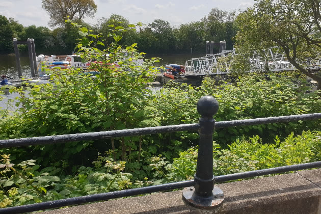 A large amount of the pervasive plant has grown either site of the ramp leading to Chiswick Pier and in front of the residential area at Regency Quay.