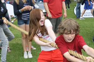 Alex Hogan, (aged 10) and Freya Eastwood (Aged 8) taking part in the kids tug of war As ever there were some amazing prizes to be won in the Grand Draw including an iPad2, a Burberry handbag and a weekend at a Fuller’s Hotel. Official media partner ChiswickW4.com hosted the online auction of 40 high quality items and experiences including a Porsche for a weekend. The auction was concluded on the Green by Andrew Polnik, Auctioneer from High Road Auctions, raising over £5,000 towards the fair target. Many local businesses backed the event through their sponsorship and generous donations. The Fair Organising Committee would particularly like to thank; Volvo, Waitrose, Edward D’Arc, The George IV and Fuller’s, The Moran Hotel, ChiswickW4.com, The Park Club, High Road Auctions, Aktiva, Adrenalin Rush, Featherstone Leigh, Sutton Mattocks, Kitchen and Pantry, plus the many other local businesses who have contributed towards the Fair.