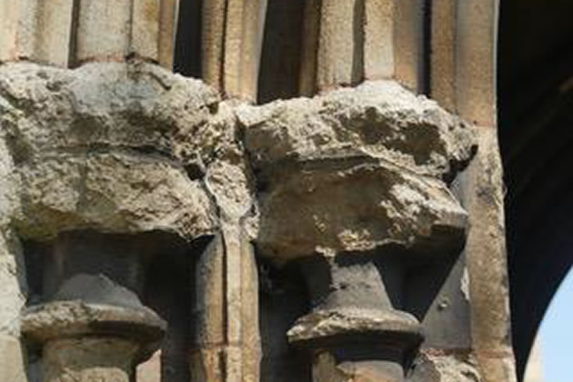 Masonry in need of repair at St Nicholas Church, Chiswick