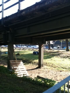 The area being cleared up Transport for London (TfL), who own the land, procured a court injunction to carry out the eviction and notice was served on the group to leave the area. TfL had first to register as owners of the land before it could seek the injunction. An eviction was carried out by bailiffs employed by TfL last Monday (October 8th) on a small number of men who had refused to leave the area. Police were in attendance in case of any breach of the peace but there were no arrests made. Workmen took down the shelter and began an operation to clear the area. Fencing has now been put up and bushes are being cleared away. However within days a Rumanian man had returned and rebuilt a shelter. It is understood that organisations dealing with homeless peple offered accommodation to the members of the group and some accepted. Two others decided to avail of an offer of flights home to Poland. A small number refused help and left the area. It is understood that some of the men had been employed and lost their jobs. The individual who erected the shelter said he had been made redundant from his job in the building trade and ended up living rough.