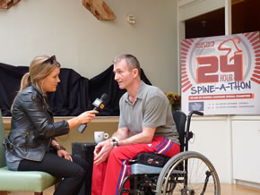 Double Olympic Gold Medallist, James Cracknell MBE, pictured with wife Beverley Turner, set up his own fund raising challenge during the Spine-e-athon, to dress up in his Olympic kit including his gold medals, hold the Olympic Torch and pay the charity lots of money. The last two Spinathons raised over £15,000!