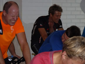 The Hogarth Health Club has been busy playing host to the 24 hour Charity Spinathon while also seeing rockstar Bruce Dickinson launch the Oxjam charity music festival. (Oct 19) This Spinathon, renamed the Spine-a-thon for this year, involves teams of up to 6 people taking to spinning bikes in classes for 24 hours non-stop. This year it is raising funds for Hogarth Health Club member Russ Dawkins, a very fit 40-year old who had a horrific bike accident in France back in June. Here is a selection of photographs from the event.