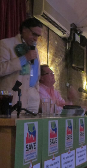 Rachhpaul Bedi and Simon Mabbutt Rachhpaul Bedi told the audience that the NHS belonged to everyone and that he was strongly opposed to plans to weaken it, including the cuts to the Charing Cross and Hammersmith hospitals. He linked the closure to plans to reform the NHS with greater Internal markets that were originally introduced by Margaret Thatcher and continued under Tony Blair. He believed that the workers of the NHS had excellent ideas for improvement but these were ignored by management. In response to a question about more privatisation Rachhpaul said; "A Push Strategy is being used now to pass the buck. The Pull Strategy is not to find options but answers; what is wrong, let us fix it collectively. Money is spent by management on themselves and not on patients and that has to be stopped." Mr. Bedi said that Labour "are equally responsible for what Tony Blair did and that they cannot divorce themselves from it, no matter how hard they try." The panel faced some tough questions from the audience with Simon Mabbutt being asked about UKIP policy to privatise the NHS and where the workers would come from if immigration restrictions were toughened. According to Crispin Flintoff: "People in Chiswick and across Hounslow will suffer as a result of these proposals. The waiting time at A&Es is already over six hours on most days. With no consultants in A&Es in Hammersmith, Ealing or Charing Cross, there will be a horrendous queue at West Middlesex. West Middlesex does not have adequate transport facilities so it is likely to take Chiswick residents over an hour to get there. May 21, 2014