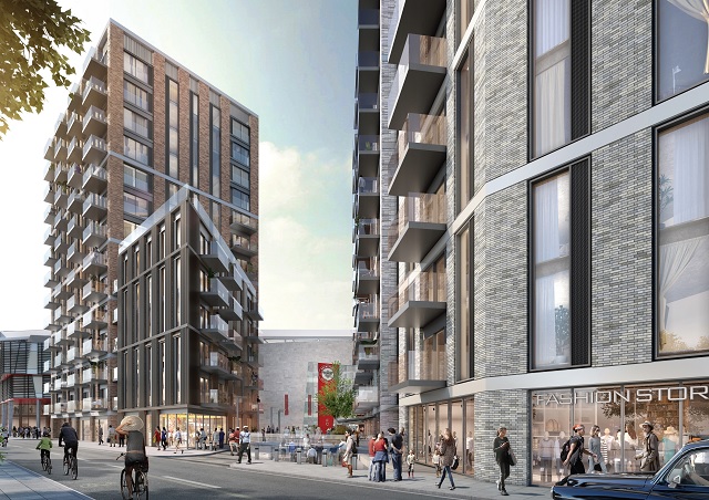 The first phase of the residential element of the scheme has been redesigned to fit better within the local context and the 487 new homes are a mixture of apartments to rent and buy designed to meet the housing needs of the local area.