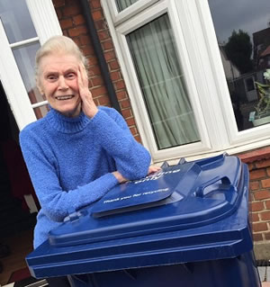 85 year old Mavis Trainer has written a poem about Ealing's rubbish saga As D day (or should that be W day) approaches for Ealing's new bin service, some local creativity is emerging from beneath the many, many complaints. Mavis Trainer, 85 (as pictured matching the blue of her recycling bin ) was so inspired by the ongoing saga she has put pen to paper and written a poem.