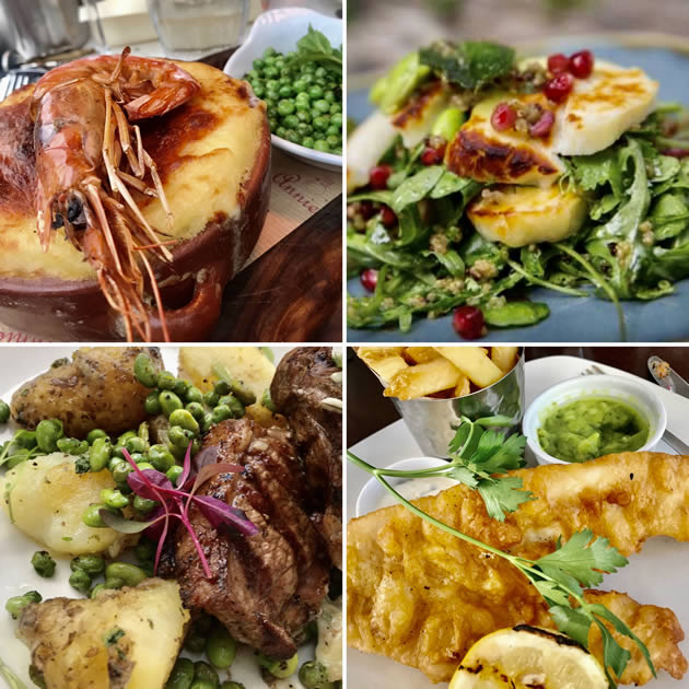 dishes ... luxury fish pie with lobster, Lamb rump jersey royal Potatoes,