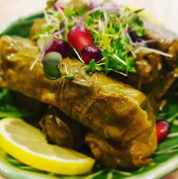 Authentic smoked aubergine with hint of beetroot makes the Beetroot Mutabbal a real favourite, the hand rolled wine leafs are tender and juicy, a must try!