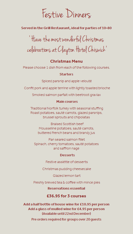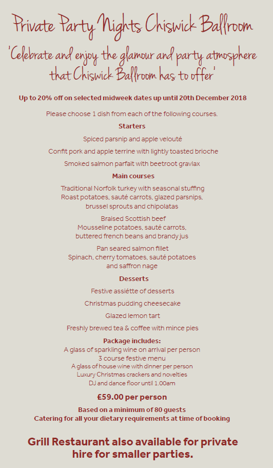 Christmas parties in the Chiswick Ballroom to team dinners at the Grill Restaurant,