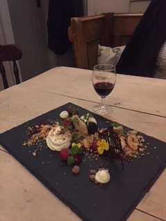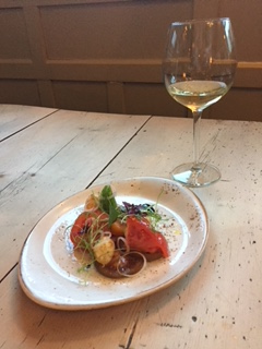 Manager Max, also originally from Sardinia, described the Queen's Head ethic. It retains a traditional pub atmosphere with no segregated drinking and dining areas. You are as welcome to pop in for a couple of pints of one of their craft beers as you are for a sensational celebration meal or anything in between. Both lunch and dinner menus feature imaginative cuisine using only the finest fresh ingredients and absolutely nothing pre-prepared or frozen. In fact they have only a tiny freezer to accommodate their home-made gelato. There is something different on the menu every day we enjoyed a sensational ox cheek croquette which was smoked and spiced and utterly delicious. Another stand-out starter was Gravadlax which had been matured for six days and served with a horseradish cream, beetroot, sweetly pickled cucumber and a squid ink tuille.