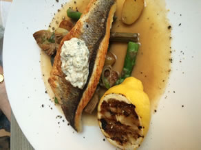 I was tempted to have a seafood main course and opted for the Seabass, which came served with asparagus, artichoke, new potatoes and creme fraiche tartare. Lucky that the starter had been fairly substantial. I felt the piece of fish, though nicely cooked, was a little on the meagre side and I did mention this to the management.