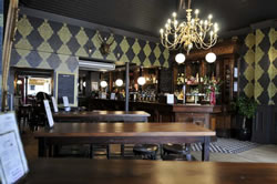 Although local man John Paul (known as JP) is still bedding down in his new kitchen, he has already made changes to the pub’s menu keeping the traditional fare whilst adding a risotto and lasagna as a nod to his Italian wife. We chose Cajun chicken served with green salad and chips and a steak with the same accompaniments. The plates were huge and full. Both the chicken and steak were good quality and tasty with the latter cooked precisely to order. The chips, neither fries nor chunky, were a let down. “Work in progress” we were assured when we commented on them.