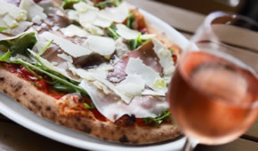 We went there for the pizzas, because that’s what Canta Napoli is famous for with their lovely big pizza oven. But there’s more than just pizzas, Canta Napoli is a neighbourhood restaurant offering a range of home style Italian cooking at very reasonable prices, and, judging by the night we went, it’s kid friendly. There’s a big choice of starters, which include bruschetta, olive pate, artichoke pate and plenty of dishes with goats’ cheese, ham and mushrooms. And there are some dishes to share, such as pizza bread topped with mozzarella or smeared with garlic, olive oil and rosemary. We settled for a selection of marinated olives. Large, green Nocellaren's and Gaeta olives marinated in olive oil infused with garlic, chillies, rosemary. They were lovely. Pizzas are very filling so a small starter is plenty. The pizzas were the main event. I had funghi porcini, a tomato base with proper porcini mushrooms, tasting deep and dark just like they should. My companion had pizza pucinella with mozzarella, spinach, goat cheese, sun-dried tomatoes and pancetta. It was all just as it should be, thin based crispy pizza with generous tasty toppings. One of them was a tad burnt, but after being in that pizza oven, perhaps it’s not surprising. It was still delicious. To go with it we shared a wild rocket salad with parmesan shavings. There’s a big choice of pizzas offering all sorts of combinations, with plenty for vegetarians. And they come in two sizes, single which is 12 inches in diameter and half a meter if you’re starving or sharing.