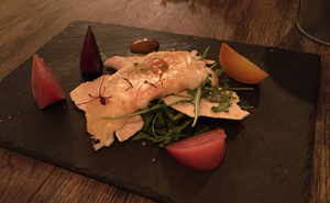 We chose starters from the Specials menu: one arancini with aubergine, mint and cheddar and the other roast Pecorino cheese with mixed beetroots. The arancini were perfectly cooked and the aubergine and mint added a more eastern Mediterranean flavour to this Italian standard. The roast Pecorino was a delectable thick chunk of molten cheese with mixed beetroot, rocket and dressing. We'd never seen cheese served like this before and have been missing out: it really was amazing.