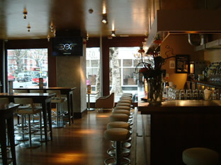 Although Revolution had their soft opening, which was met with some very positive reviews, a week ago, the big night party was on Friday 17th March. Packed to the rafters (and a lengthy queue outside) I did notice that quite a number of people were smoking but thanks to the evidently effective extraction system, the room wasn't smoky - shame though the the extraction system couldn't remove the acrid smell from my clothes when I got home. A proficient team of waitresses buzzed around the crowd all evening clearing tables and treating guests to sample vodka shots. I can personally vouch for the amazing white chocolate and the peach varieties but then reined myself in for what was unavoidably going to be a long night! I didn't suffer any as the Sauvignon Blanc was as palatable as it was generous in its measure (£2.90 for 125ml and £3.70 for 250ml) and the Guinness perfectly served (high praise indeed from a man who has drunk Guinness in many a tavern.) Fellow members of my group were rather more adventurous with their exploration of the cocktail menu with the Scarlett Miss Charlotte (a £5.75 combination of Stoli Razberi shaken with raspberries and Teichenne Raspberry, finished with fresh lime and a dash of soda) coming out as the clear winner. I asked my merry band what they thought of this latest addition to Chiswick's social scene and received the following comments which, whilst all 100% genuine (because I wrote them down as they were said), I am afraid unattributable with any accuracy due to the fact that Sauvignon Blanc has an amnesic effect on me! Anyway here goes: "Excellent", "Just what Chiswick needed" "Absolutely loved it, would definitely come back" "Loos are a great improvement, I don't feel like I'm walking into the abyss any more" "Waitress service excellent" and "Brilliant night out - this a great place" Now whilst I whole hearted accept that I asked for these comments rather late on the evening when my friends could have been described as rather worse for ware, these are nevertheless their honest reactions documented. Food was understandably not being served during the party but I did manage to commandeer a Chiswick's Revolution is a pilot venue for the group with a greater focus on food than the other branches. With an emphasis on freshness, starters priced from £4.25 include King Scallops, proscuitto, aubergine, mozzarella and basil fritters and hoi sin duck rolls. House specialties include rotisserie chicken (unique to Revolution Chiswick) and sevruga caviar and Zubrowka vodka served with blinis, gherkins and sour cream (must be pre ordered to avoid disappointment). Main courses of steak, salmon, salads and spaghetti start from £6.95 and low carb options, sides dishes, sandwiches and desserts are all equally moderately priced. 2006 is 10th anniversary of the opening of the first Revolution Vodka bar and to mark this landmark birthday, Revolution will be holding a Big 10 Party on Thursday 30th March 2006 where drinks will be at 1996 prices, party tunes will fill the air and, if that's not tempting enough, vodka and cocktail sampling will also be on offer - no prizes for guessing where I'll be that night!