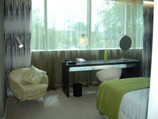 It was a extremely blustery Friday when we were invited by The Chiswick Moran Hotel's Head of Sales, Robert Russell and General Manager, Francisco Ventura, for a 'hard hat' preview of what both local residents and visitors to Chiswick can look forward to when this new hotel opens on Thursday 22nd June 2006. Moran Hotels is a family concern, owned and operated by the Moran Family. Tom Moran, Managing Director, began his career in the hospitality industry in the sixties. The acquisition of Ireland’s first million pound pub, the Red Cow Inn in 1988 was shortly followed by a number of other high profile establishments the most recent being The Chiswick Moran Hotel. Situated at the Chiswick Roundabout end of the the High Road, The Chiswick Moran Hotel will have a total of 123 rooms consisting of deluxe and executive bedrooms, junior suites and penthouse suites. The hotel's interior (although currently covered in plastic wrappings and dust) is based on a 'West Coast meets West London' theme with chic retro accessories, dark wood paneling, and contemporary muted tones throughout. The double height lobby area is the central point between the large bar area, library / meeting area and the restaurant which are all wi-fi enabled. Polished marble floors, full height windows and an outside terrace adorn the 100 seat restaurant. Called 'Napa' in keeping with the hotel's West Coast theme, the menu will be "traditional British with an American twist" although remaining true to their Irish heritage, a full Irish breakfast will be on offer. The bedrooms have all been finished to the same exacting standards with funky accessories (flat screens come as standard), London landscape prints, crisp bedding and luxurious flooring. Gadgetry enables colourful mood lighting in the sleek contemporary bathrooms each fitted with a separate shower with heads the size of dinner plates. Aside from the commonplace hotel services, The Chiswick Moran Hotel can offer facilities for conferences and private parties in their first floor space which is bright, comfortable and most importantly flexible. "It company policy for the Moran Group to recruit their staff from the area local to the hotel," said Acton resident and General Manager Francisco Ventura, "and we are currently looking for local people to fill a number of vacancies.*