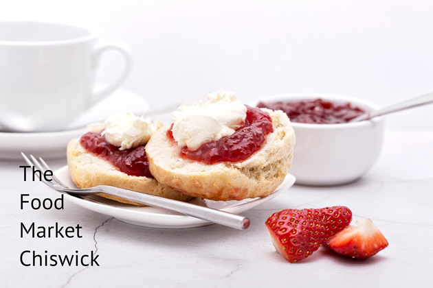 The recipe, from Market Manager and Executive Chef Neil Roster, was inspired by the fabulous, farm fresh strawberries sold at the market by Ringden Farm and Hook and sons' raw cream. It is the centre piece for decadently, indulgent teatime treat.