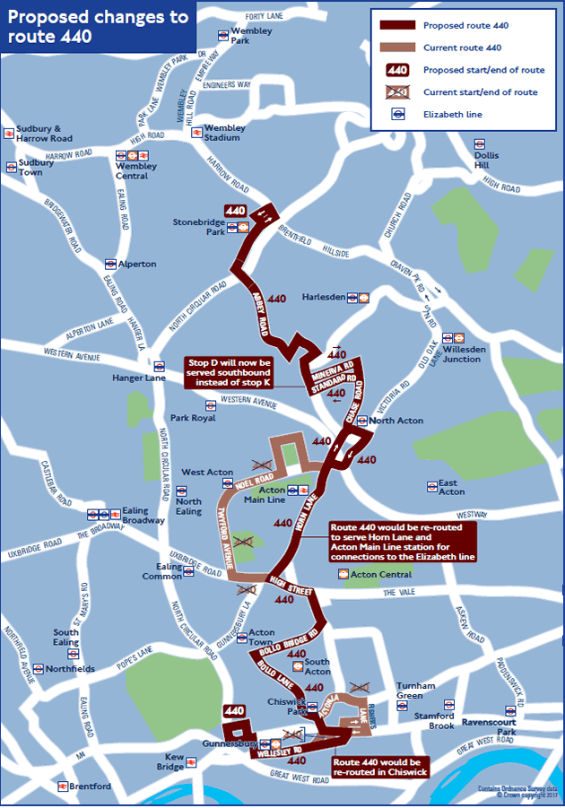 TfL said at the time that rerouting the 440 would also improve bus links into Chiswick Business Park from South Acton Estate and provide a direct link between stops at the northern end of Chiswick Business Park and Gunnersbury station. A similar consultation into truncation of the 27 bus route was carried out. Despite a majority of residents opposing the changes, TfL went ahead with the proposal, stating that its figures for bus use showed that the service was not being used enough to merit keeping the route to the Business Park. December 6, 2019