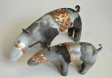 Besides paintings and works on paper there are two fashion lots – a stylish hand-made fur-felt hat by cutting edge hat maker Max A Hatter and a necklace by Hilary Lines. Two ceramics also feature in the sale – one a vase by recently graduated Camille Biddell (estimate: £60-80), the other, of two beasts by the well-known local ceramicist Claire Ireland (estimate: £100-150)