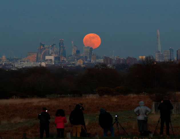 The rare lunar event dubbed the "super blue blood Moon" dazzled skywatchers around the world. It was a once in a blue moon event and Chiswick photographer Jon Perry was there to record it. Taken from a hill at Richmond Park, Jon took this shot of the supermoon at 16.59 with the moon behind the buildings in the City. The unique event happens when a total lunar eclipse, a blood Moon and a supermoon coincide and it is not expected again for another 150 years. The image above was featured on the BBC lunchtime news today at 1.30pm and the presenter remarked "what a beautiful picture it is." Jon told chiswickw4.com that it can be difficult to get a good view when the skies are cloudy but he was in luck last night. "The weather was kind and it was a magical sight. The moon looks large if you can get some distant human scale (say buildings) in front of it a long way away. We know the buildings are huge, but perspective makes them small, hence the moon looks gigantic. High in the sky we have no reference for comparison," he commented. You can see the sequence of his photographs ....thank