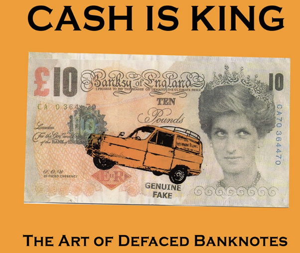 Leading Chiswick artists Bob Osborne and Carrie Reichardt have been invited to launch their latest book Cash is King-The Art of Defaced Banknotes at the prestigious Saatchi Gallery on 30 August. The book launch will be accompanied by an exhibition of artistically defaced money by Bob Osborne, Carrie Reichardt and a host of other international artists from all over the world. The show is open free to the public from 31 August – 8 September and then as part of the British Art Fair from 9-23 September. In the late 18th century the death penalty was applied for forgery or altering a bank note. The advent of low denomination notes meant that paper money was no longer exclusively used by the elite and the amount of cases rose. Old Bailey trial records show that, between 1804 and 1834, 58 people were hung for counterfeiting offences with many times that transported to Australia for possession of illegal bank notes. With low levels of literacy many of these people may have been unaware they were carrying outlaw cash. It continues to be an offence to deface any Bank of England note under the terms of the 1928 British Currency and Banknotes Act. The newly published limited edition book is available from the online shop at www.rebelnottaken.com or from the Saatchi Gallery at the Duke of Yorks HQ in Chelsea. August 18, 2018