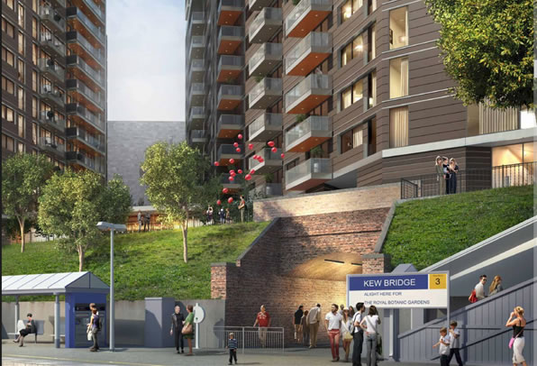 Lionel Road development site as it is at the moment The new proposals show a reduction in the communal amenity space within the project area from the 5,595sqm specified at the outline stage to 4,872sqm in the latest plans. The developer claims that this is due to 'a range of qualitative improvements' include the provision of a transparent residential lobby to the frontage of one of the buildings. There appears to be no mention of affordable housing in the latest application. At the time of outline planning permission it was determined that the amount of affordable housing would depend on the profits generated by the scheme. The first phase will comprise three sites, the Central Southern site which will be to the north of Kew Bridge Station, the Capital Court site which will be on Capital Interchange Way and the Central Eastern site which will be at the north end of the site toward Chiswick Roundabout.