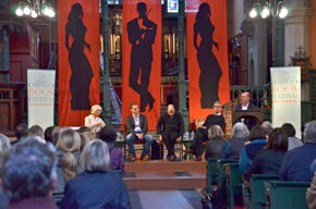 And there was a memorable final session in St Michael & All Angels Church on the Sunday afternoon, marking 60 years of James Bond, with spectacular red and black Bond banners as a backdrop. Kate Grimond (author Ian Fleming’s niece) spoke with three of today’s top spy writers: Charles Cumming, Alex Gerlis and Christopher Morgan-Jones, as well as two non-fiction authors, Roger Hermiston and Sinclair McKay.