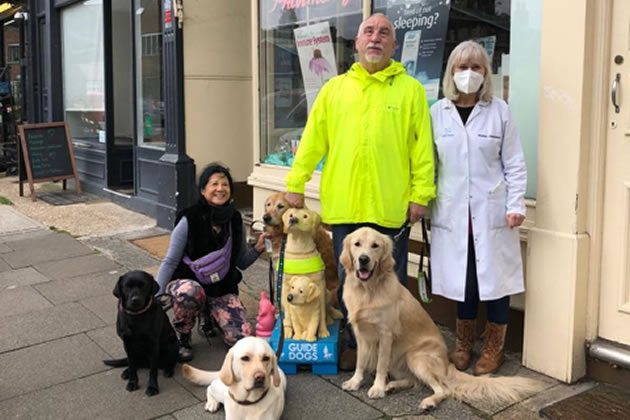 Dave said, "We were out exercising the dogs and it was a good chance to call in and thank Sue, the team and customers for their valuable support for Guide dogs in our 90th year; many thanks to you all".