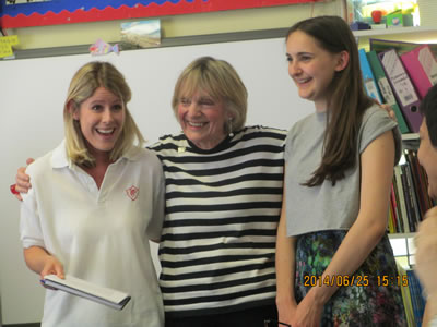 Susi with two ex-pupils. Kate Steed (now a teacher) and Kate McGregor The hundreds of pupils who have been in her classroom at Chiswick & Bedford Park school probably do not realise that their teacher has had such a colourful life. Born on the brink of WW2, she attended fourteen schools, as her father was in the Royal Air Force. This included stints in the then Rhodesia and Egypt- she had to escape in an armed car (which broke down in the desert) when riots broke out against King Farouk. After completing her education in the UK, her parents sent her to a Secretarial College in South Kensington. She still "craved" to be an actress, and was offered a place at The Guildhall School of Music and Drama. She also decided to take a teachers' training course and left Guildhall with a Distinction in teaching and a prize for Best Shakesperean Actress. However a life as a thespian had to be put to the background as the demands of a teaching career grew. One of her first jobs was at the new Peckham Comprehensive School, where she produced plays and unscripted dramas, introducing the first CSE Theatre Arts Course in London and writing a book, Drama Without Script. Interviewed by The Times in 1968 on the benefits of teaching drama, she described what motivated her and said: “When I worked in an office I met so many juniors who were quite unable to really talk to each other, let alone with senior staff or visitors. Largely because of this inability to express their ideas – and I know they had ideas - they were terribly lonely, and vaguely dissatisfied with their empty lives. I knew that in today's speech and drama teaching in schools, the emphasis is no longer on elocution, nor on producing the end-of-term play, but on helping children to use language effectively to communicate. So I applied for a specialist course, and here I am, loving every hectic minute of it." Her passion for drama as an effective means of communication, has not diminished and outside the classroom, she attends theatre on a regular basis with friends. Following her marriage, there were stints as an expat in the Far East and Middle East from 1973-1982, continuing to teach in Hong Kong University and as an Art Critic with the Hong Kong Standard. In Singapore she taught at teaching training college until the birth of her eldest son Richard, in 1977. Saudi Arabia proved more 'challenging' due to the rules on foreigners working, but she taught English in a primary school - and was paid by selecting a piece of gold jewellery in the souk. Her son Christopher was born in London in 1982 and she stayed in the UK as he was unwell as a baby. Following her divorce and now living full-time in Chiswick, she took a succession of teaching jobs, including for a short time at Arts Ed, until her arrival at Chiswick & Bedford Park Preparatory School in Bedford Park, where she has remained, teaching English and Drama. After discovering that Christopher was dyslexic, she threw herself into finding out the best methods for helping children with dyslexia and other learning challenges - this aspect of 'boosting' children is still an important part of her work in eduction. She has continued to mentor children with creative writing. Several of her pupils from C & B have won prizes for writing and some have gone on to become teachers themselves.