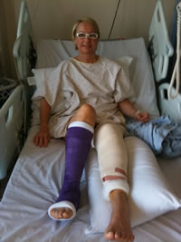A legend amongst the children of Chiswick and their parents, Amanda is uncharacteristically out of action at the moment after being knocked down by a car. The accident happened at 11.30 on Monday 18th April. Amanda had finished her class at Chiswick Town Hall and was crossing Heathfield Terrace when a "silver / dull grey transit van swerve right out of Town Hall Avenue forcing a motorbike to stop," explained Amanda from her hospital bed. Amanda believes it was this grey transit van that caused the blind spot resulting in the accident and is asking for the motorcyclist and witnesses to come forward to help her case. "All I remember then was hitting my cheek on the bonnet of a black car." said Amanda. The driver did stop at the scene. An eye witnesses described how Amanda was thrown ‘up in the air’ resulting in a fractured right ankle and shattered left leg which has needed a bone graft, plates and pinning. After what she describes as a less than satisfactory experience at Charing Cross Hospital Amanda was moved to St Mary’s in Paddington for a series of operations. She will be there for at least another week. Amanda was all set to fly to Abu Dhabi and Dubai last week with five events and sponsorship meetings set up. These and her classes have all had to be put on hold for the foreseeable future. She has months of physiotherapy ahead as well as needing a wheelchair for six to eight weeks, and finding help to care for her daughter. "I've crossed that road twice a week for the past twenty years!" she said. Any witnesses are asked to email joleen@amandasactionclub.co.uk or amanda@amandasactionclub.co.uk. April 26, 2011 |