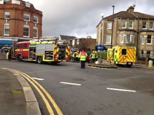 A driver was injured when his car crashed near the mini roundabout at the junction of Wellesley Road and Sutton Lane North today. Customers in the Rhythm & Brew cafe heard a loud crash at around 1pm as the car apparently came around the corner from the Wellesley Road direction. One report said the car appeared to veer out of control coming round the corner, and mount the pavement at Walpole Gardens, colliding with a lamp post. The corner is a busy junction with a mini roundabout onto Sutton Lane north.
