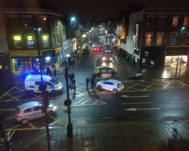 A motorcycle delivery rider had to wait over 20 minutes for an ambulance to arrive after being involved in a collision on Chiswick High Road this Saturday night (11 February). The man was hit by a car turning right into Turnham Green Terrace and became trapped under the vehicle. Police say they were called to the scene at around 9pm. The picture above was taken at 9.19pm and shows that no ambulance had arrived by this time. London Ambulance Service say they were on the scene by 9.21pm eleven minutes after they were aware of nature of the incident. Eventually the victim was taken to a west London hospital and the road was reopened at some time before 10.13pm. His injuries are described as non-threatening. The number of accidents involving motorcycle delivery riders in the area appears to be rising. A man was thrown off his bike after colliding with a car on Chiswick High Road in December just a 100 yards away from the scene of the latest incident. A London Ambulance Service spokesperson said, “We were called at 9.07pm on Saturday (11 February) to reports of a road traffic collision at Chiswick High Road. We sent an ambulance crew to the scene. We treated a man at the scene and took him as a priority to a major trauma centre” The nature of the incident was determined by the call taker at 9.10pm and an ambulance crew was dispatched soon after. December 21, 2016