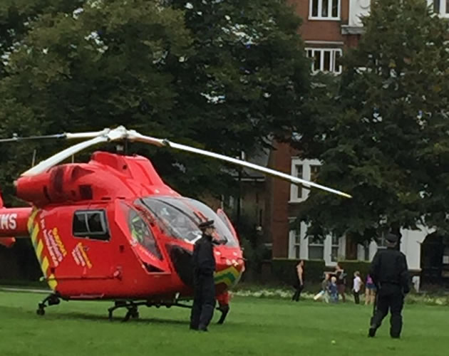 Air Ambulance lands on Turnham Green as part of High Road is closed
