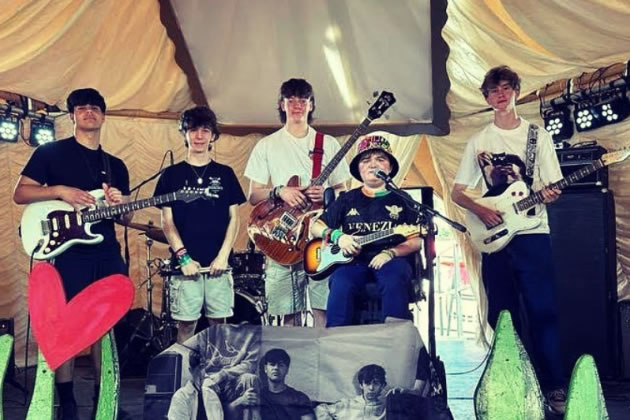 June 25, 2023 A rock band from the local area became the youngest ever to perform at Glastonbury this Friday (23 June). Rather than studying for their GCSEs, Eli Crossley, Alfie Lewis, Freddie Wormleighton, Jay Guru-Murthy and Will Ponds who make up Askew and are aged 15 and 16, were in Somerset playing at the same festival as Sir Elton John, Guns N’ Roses and the Arctic Monkeys. The band was formed seven years ago and, up until now, had only played gigs in small venues with an audience made up mainly of their parents. The idea of playing the festival first came up when front man Eli Crossley from Chiswick said that the Smart Suit, a technology developed by his mother’s charity, might enable him to fulfil his dream of performing at Glastonbury. Eli was not entirely serious when he made the comment during an interview on BBC Breakfast earlier this year. He was appearing to talk about the rare condition he suffers from called Duchenne muscular dystrophy. This is a degenerative disease and means he is increasingly dependent on assistive technology to perform and has been in a wheelchair since last year. As a result of the interview a viral campaign on social media took off with the hashtag #GetTheLadIn and that helped the band get its slot. The clincher was the band being spotted performing live by a parent at a school end of term talent show. He was Jon Turner of Island Records who was so impressed that he contacted Glastonbury Festival organiser Emily Eavis the next day urging her to include them. Once she had seen a video of Askew performing she was convinced. Eli says music is a form of therapy for him and the love of British rock music shared with his friends and band mates is helping him to cope with the devastating impact of the disease.