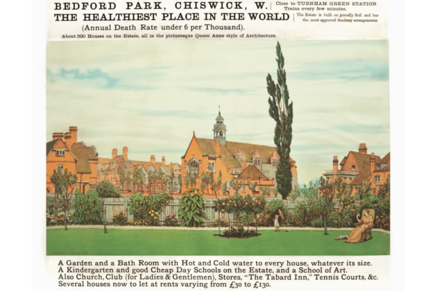 An advert for Bedford Park - 'The Healthiest Place in the World'